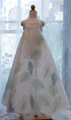 使う生地は、木漏れ日の優しく柔らかい感じを出すために、オーガンジーとチュールネットを選択。